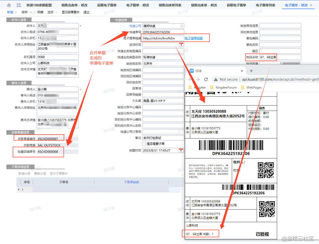[点晴模切ERP]金蝶云星空销售出库单对接快递100物流三种不同方式打印电子面单
