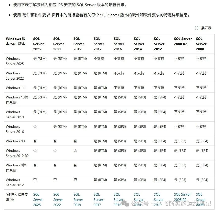 在企业数据中心服务器操作系统方面,Windows Server系还是占有不小的市场份额,根据已知信息Windows Server全球市场份额占比在20%左右,Linux系占比63%左右。剩下的就是Unix了。 下面一张表说清楚Windows系统下安装SQL Server最低版本要求,方便IT人员信息系统设计与查询。 ![]() 阅读原文:原文链接 该文章在 2026/3/2 15:09:50 编辑过 |