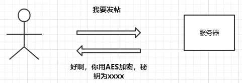 这个时候可能就有人想到了,既然内容是明文那我使用对称加密的方式将报文加密这样中间人不就看不到明文了吗,于是如下改造: