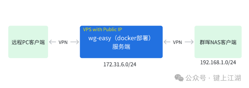 - 3. 远程 PC / 手机 作为客户端,同样接入该网络。