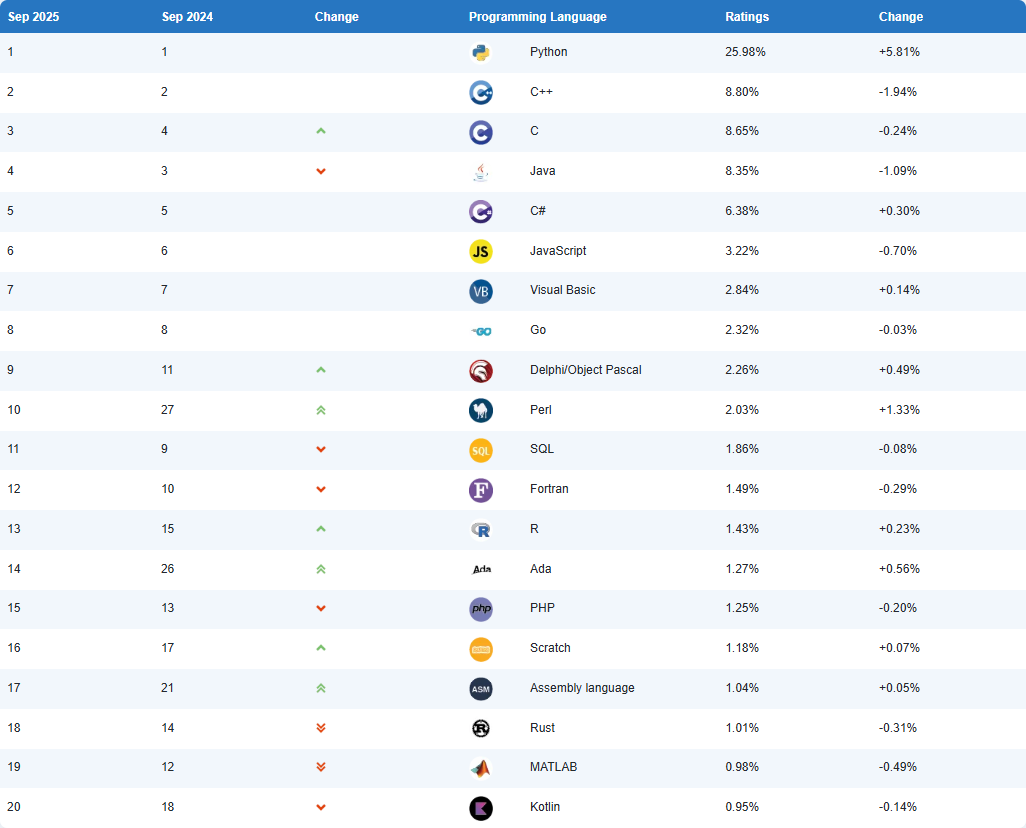 2025年9月TIOBE编程语言排行榜出炉!零基础学编程该选哪种语言?