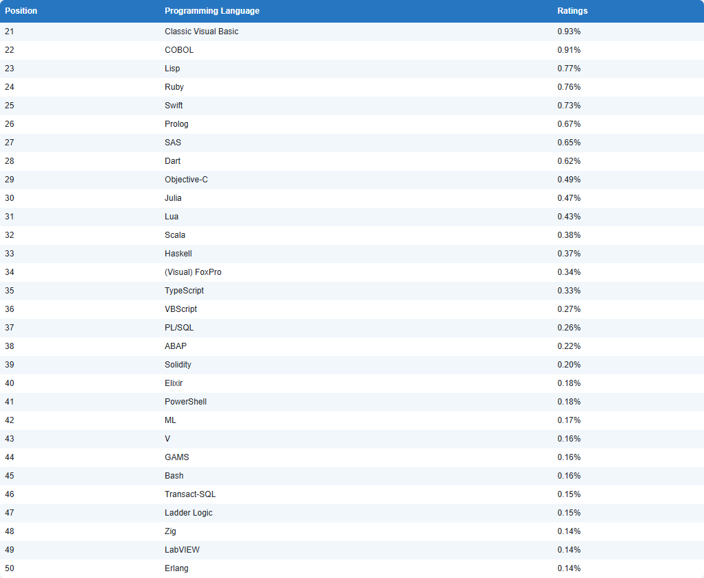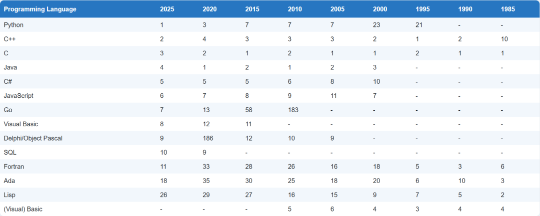 二、2025年9月编程语言排行榜 TOP 10(TIOBE)
