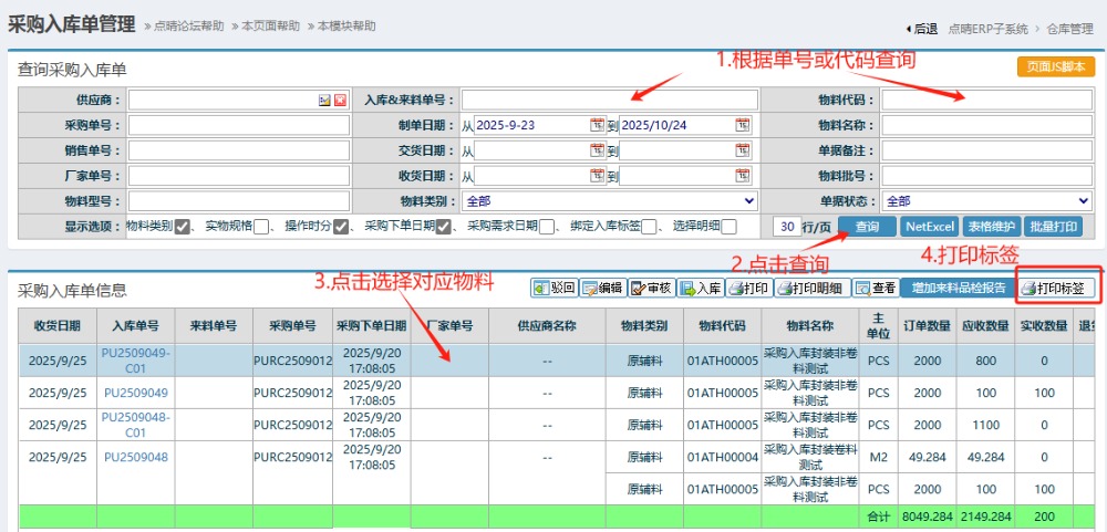 点晴模切ERP-采购入库单管理教程