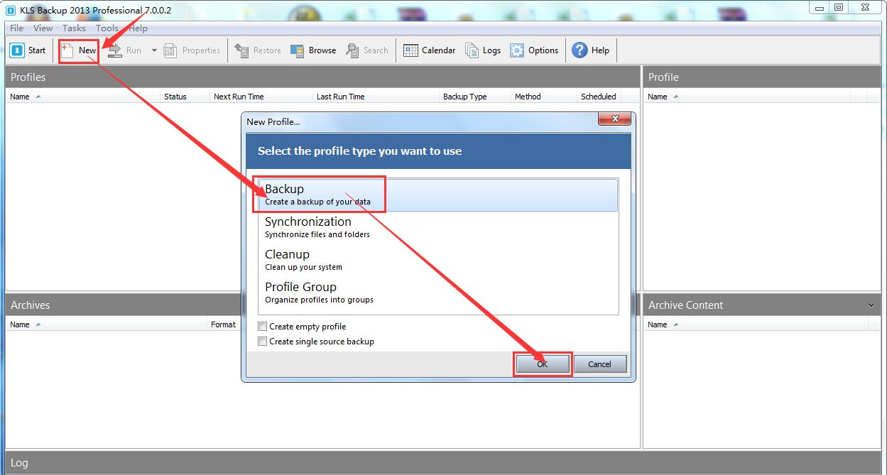 KLS支持压缩包备份(Backup)、同步备份(Synchronization)等多种备份方式。