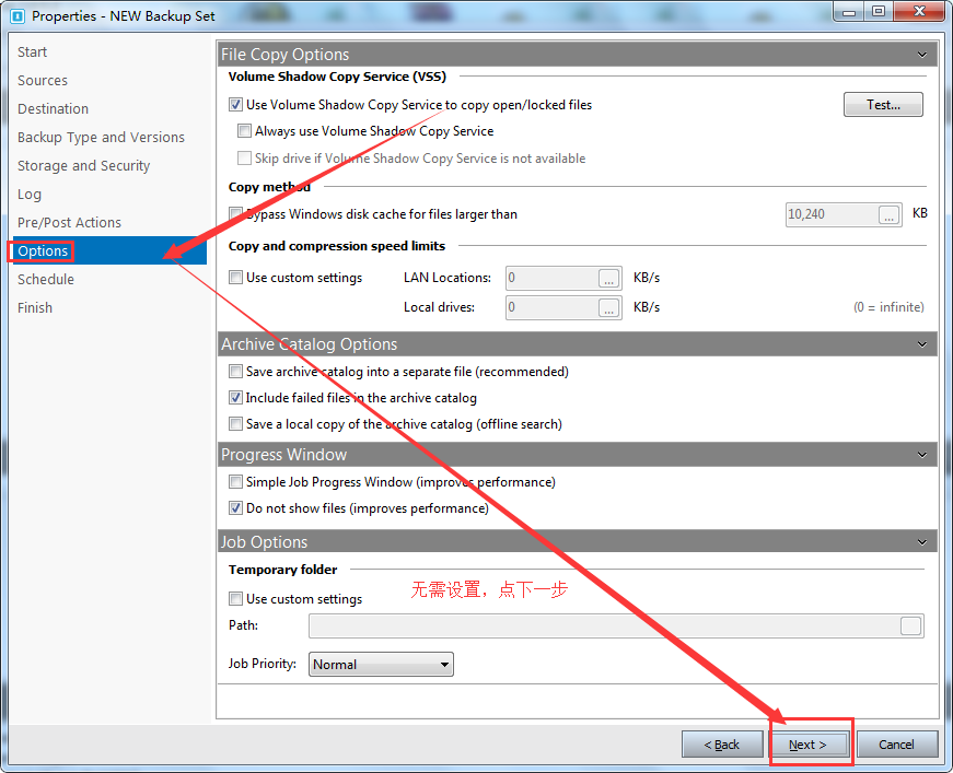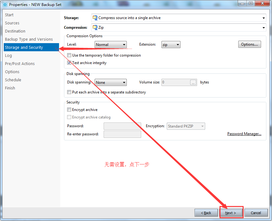 下面介绍压缩包备份方式下的设置方法:
